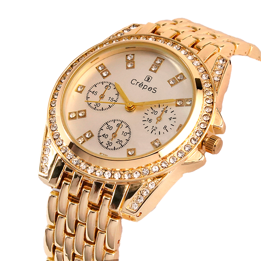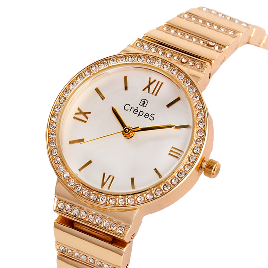 IRIS STAINLESS STEEL STRAP WITH JAPANESE MOVEMENT | WOMEN - Gold - White