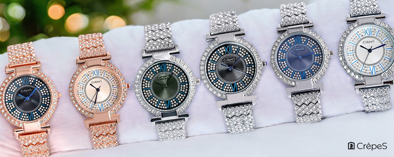 The CrêpeS Lustre Stone watch is a guaranteed showstopper. This watch features a dramatic dial paved with tiny stones, transforming it into a dazzling web of light. The silver metal strap adds a touch of cool sophistication, but it's the stones that take center stage. Unlike other fully studded watches, the Lustre uses contrasting silver for the strap, creating a bold and edgy look. This watch is perfect for the woman who isn't afraid to make a statement and loves the interplay of light and shadow.