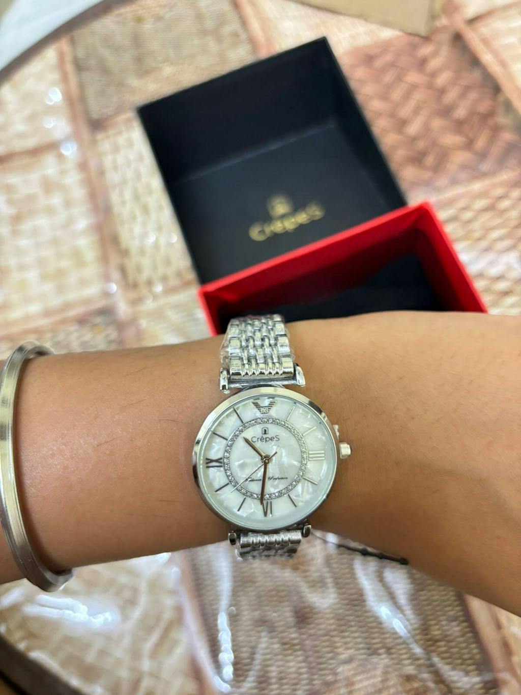 The CrepeS Prism is a captivating watch featuring a stunning dial with a mother-of-pearl effect, creating a mesmerizing play of light with every shift of your hand. Crisp Roman numerals ensure readability, while the metal chain strap adds a touch of elegance. The CrepeS Prism isn't just a watch, it's a conversation starter and a guaranteed head-turner.