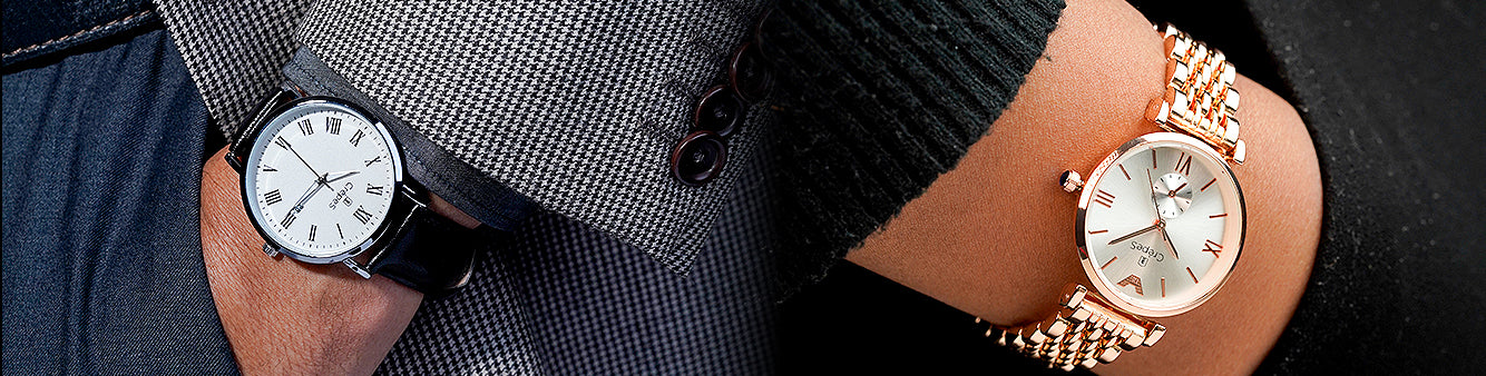 The CrêpeS Roman Couple Stainless Steel Watches offer a perfect pairing of...